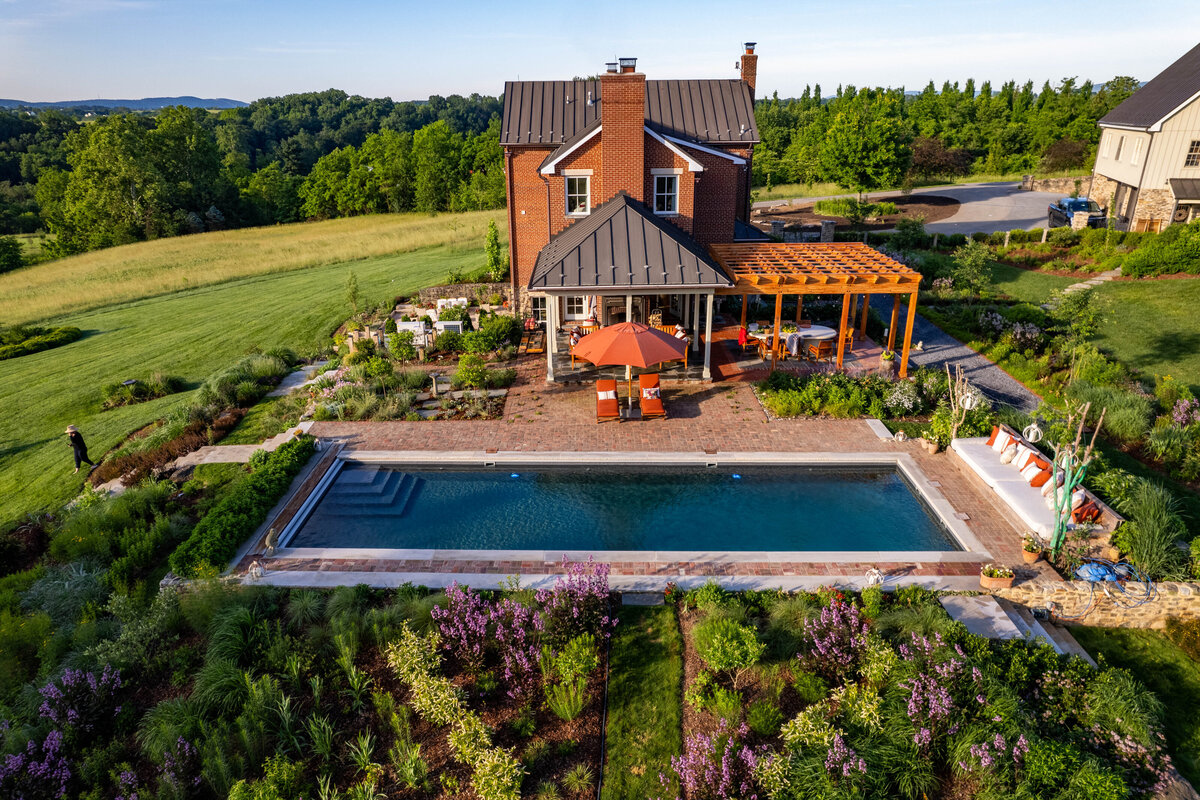 We designed and installed a natural swimming pool, providing the clients with an enjoyable space for entertainment while fostering a welcoming environment for local wildlife. To complement the property’s colonial retreat aesthetic, we incorporated various stone walls and hardscape elements. We also created a spacious vegetable garden, empowering the clients to grow their own food. Large areas of turf and hayfield into conservation landscapes, enhancing the home’s retreat-like atmosphere and promoting biodiversity by attracting birds and pollinators.